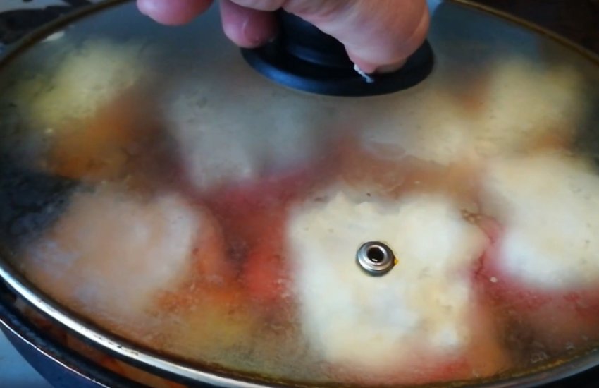 Закрийте сковорідку кришкою і готуйте на мінімальному вогні протягом 20 хвилин.![]()