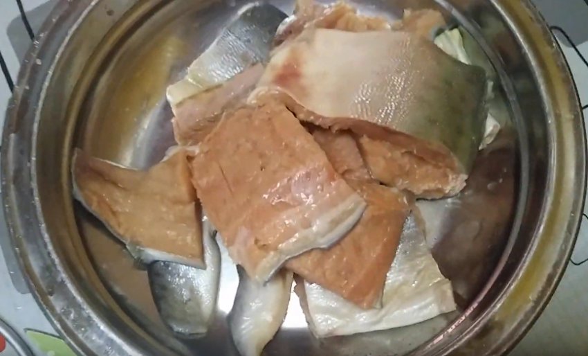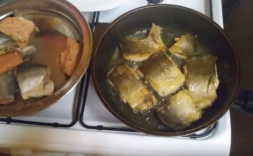 Обробіть рибу: витягніть нутрощі, промийте і розріжте на частини шириною приблизно 5 см.![]()