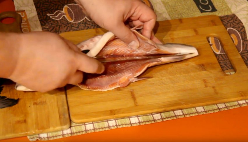 - Поріжте філе горбуші на кілька великих шматків.