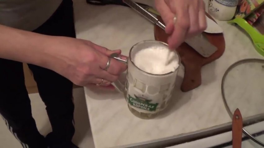 В окремій посудині (наприклад, у літровому кухлі) розвести сметану з водою, добре розмішати й акуратно вилити на сковороду, щоб риба та овочі були рівномірно вкриті рідиною.![]()