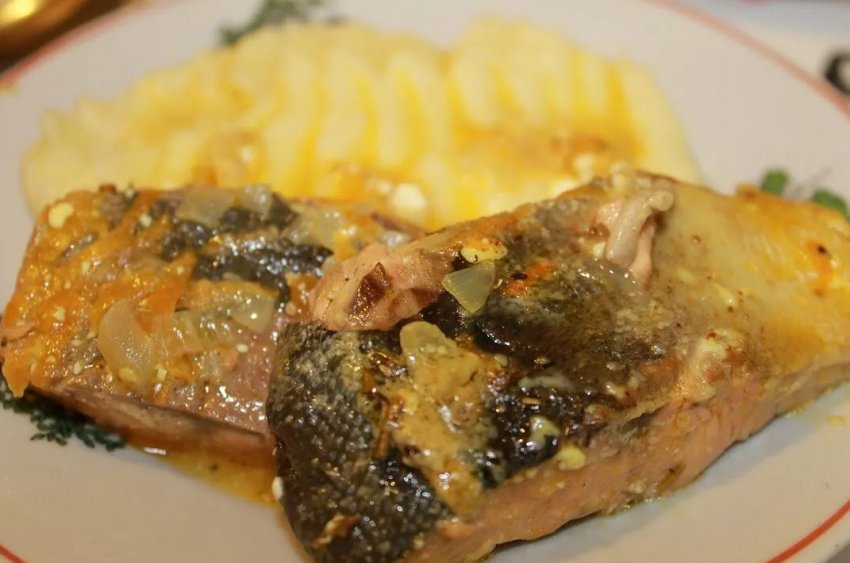 Відрізати голову, хвіст і всі плавники. Нарізати тушку на порційні шматки і знову промити кожен із них.![]()