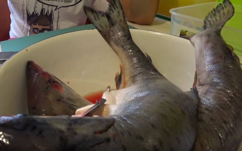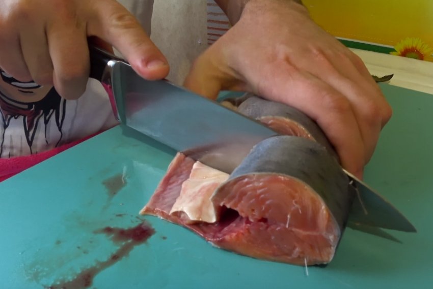 Після розморожування рибу потрібно помити, почистити, прибрати голову і плавники та порізати на частини.![]()