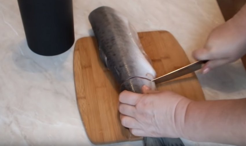 М'якоть має бути яскраво-червона, а аромат, який видає риба, - приємний, без домішок аміаку. Потім тушу слід правильно почистити. Кишки і жовч треба акуратно видалити, ні в якому разі не розчавивши їх. Якщо продукт заморожений (варіант для цієї страви не бажаний), не обов'язково його розморожувати повністю - це полегшить чистку.