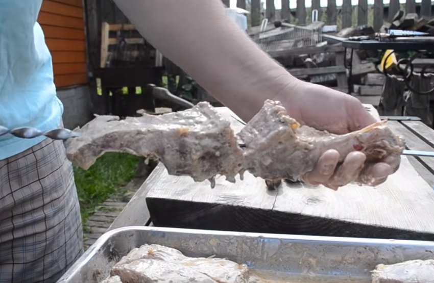 нанизати на шампур. Готувати на гарячому вугіллі. Точний час приготування залежить від температури в мангалі та розмірів стейків, але в середньому 10-15 хвилин достатньо.![]()