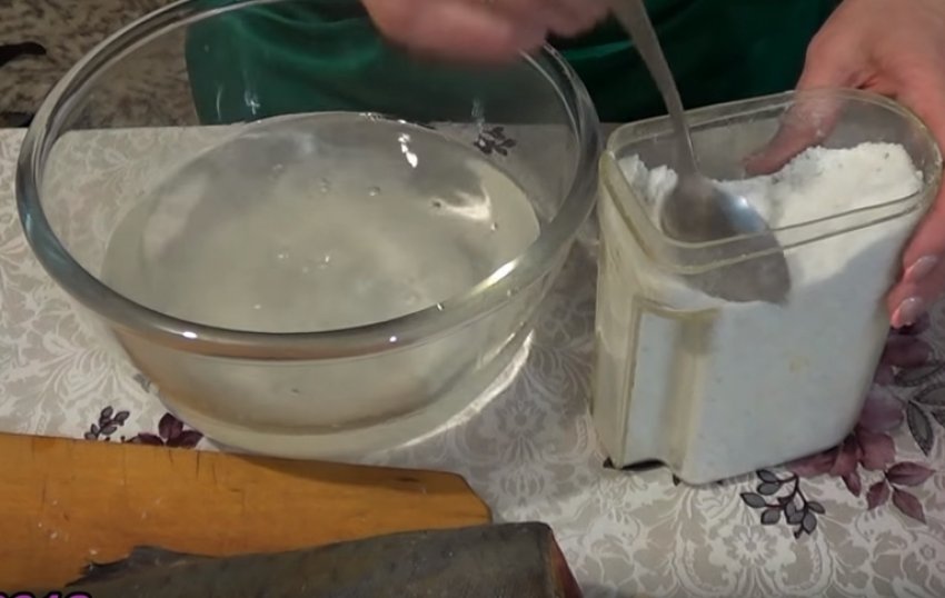 У ємність налити літр холодної води і розчинити в ній сіль.![]()