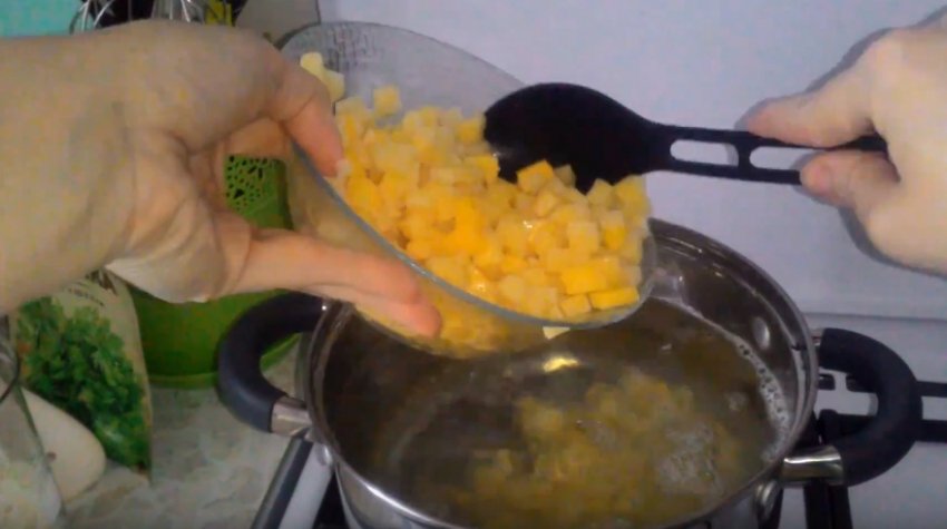 У киплячу воду покласти сіль. Потім скласти в каструлю картоплю і варити 15 хвилин після закипання.![]()