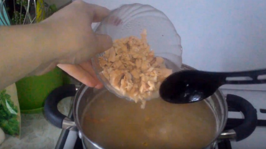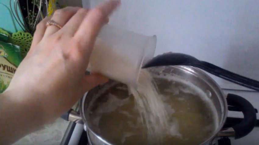 До картоплі відправити рис. Продовжувати варити ще 10 хвилин, потім можна додавати зажарку.![]()
