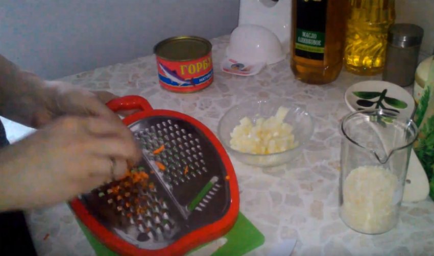 Зробити піджарку з моркви з ріпчастою цибулею на оливковій олії.![]()