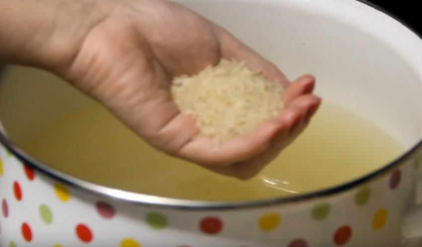 Вийняти рибу з каструлі в тарілку. Бульйон процідити через дрібне сито або кілька шарів марлі та знову поставити на вогонь. Потім додати в нього рис. Поварити крупу хвилин 15.![]()