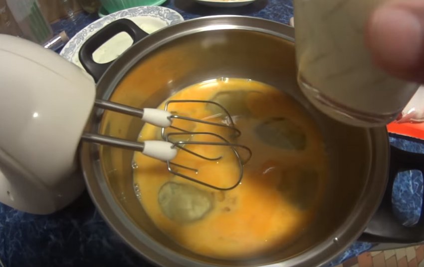 - Тим часом в окремій ємності збийте яйця і молоко за допомогою блендера, посоліть і поперчіть.