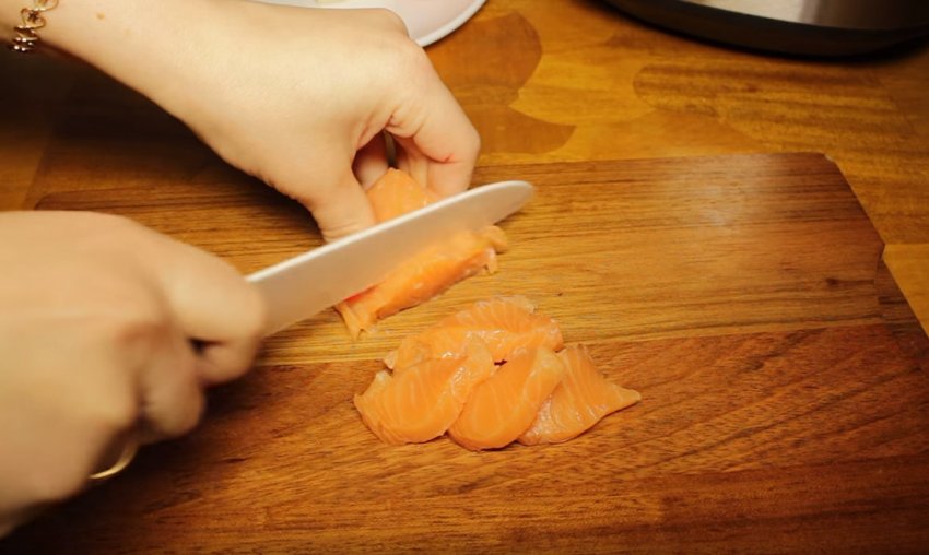 Горбушу перед приготуванням необхідно очистити від луски, обробити і випатрати. Потім рибу потрібно обсушити рушником і нарізати на порційні стейки шириною приблизно 5 см. Овочеві продукти потрібно очистити від шкірки та промити під проточною водою. Усі інгредієнти мають бути свіжими і з допустимим терміном придатності.