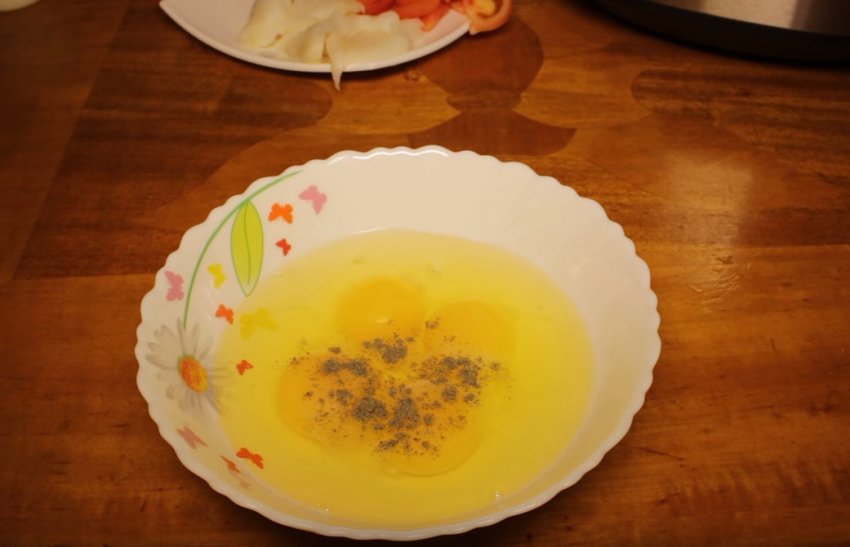 В окремій ємності збийте яйця з молоком, попередньо додавши за смаком сіль і чорний перець.![]()