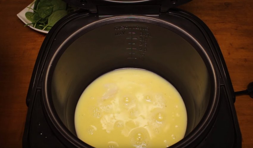 Вилийте збиту яєчно-молочну суміш у чашу для мультиварки.![]()