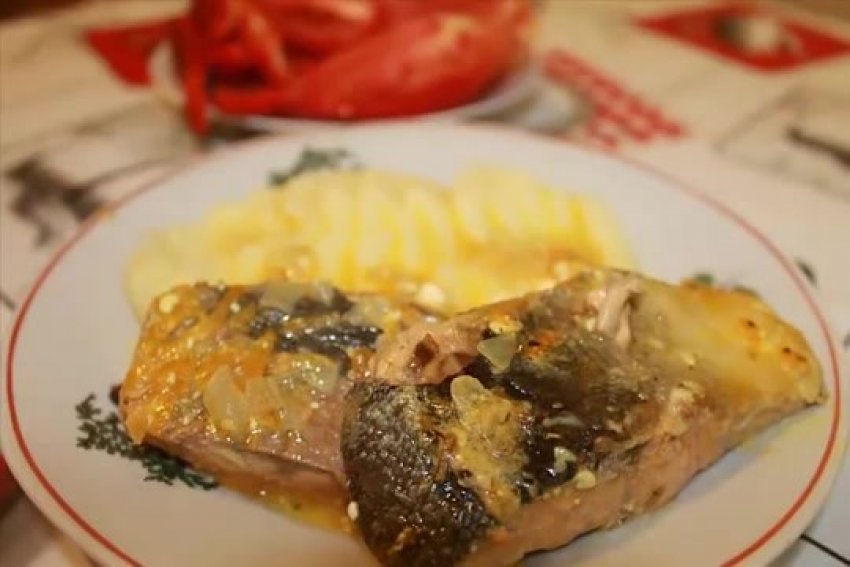 - Рибу почистити, витягти кістки і розділити на порційні шматки. Підсмажити рибу з обох боків на соняшниковій олії до напівготовності.