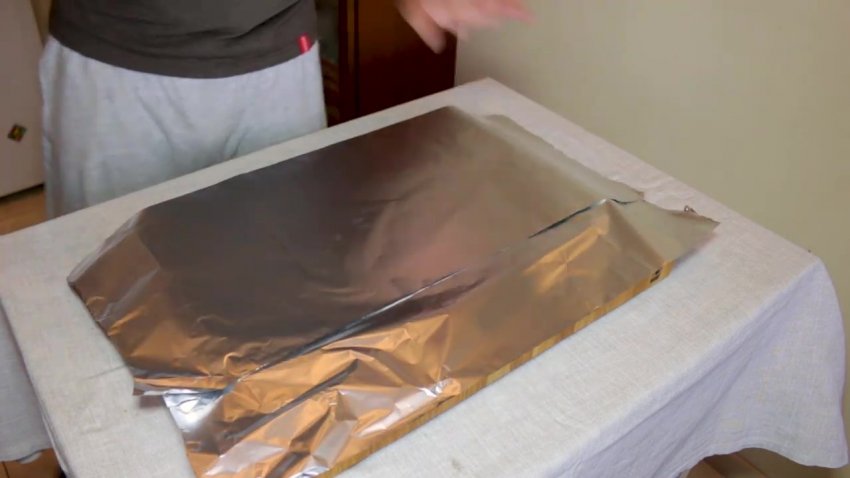 Розкласти по поверхні столу фольгу завдовжки трохи більше довжини тушки. Промазати її соняшниковою олією.![]()