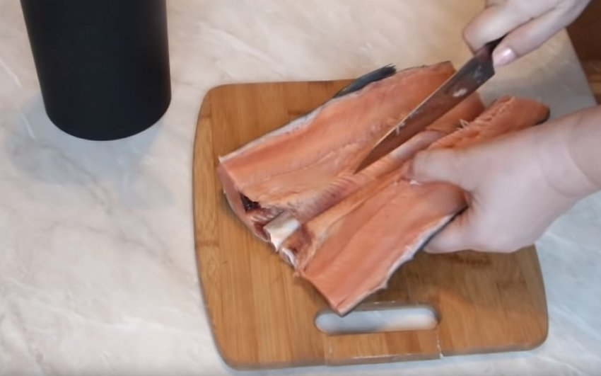 - Філе риби слід промити під проточною водою, це дасть змогу змити залишки кристалів солі, а горбуша буде не такою солоною.