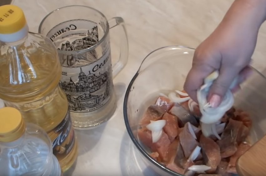 Маринована горбуша з цибулею в оліїВидео-рецепт: Маринована горбуша з цибулею в олії
