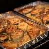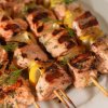 - Викладіть рибу на решітку і просмажте шашлик на заздалегідь підготовленому вугіллі протягом 10 хвилин. Перед подачею на стіл викладіть на горбушу цибулю. За бажання можете посипати зеленню.