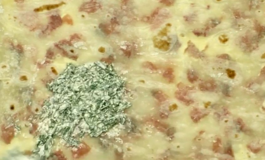 Змастіть його сумішшю з майонезу та зелені.![]()