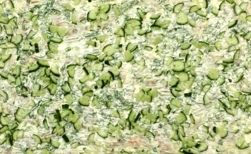 Наступним шаром викладіть огірки та полийте начинкою.![]()