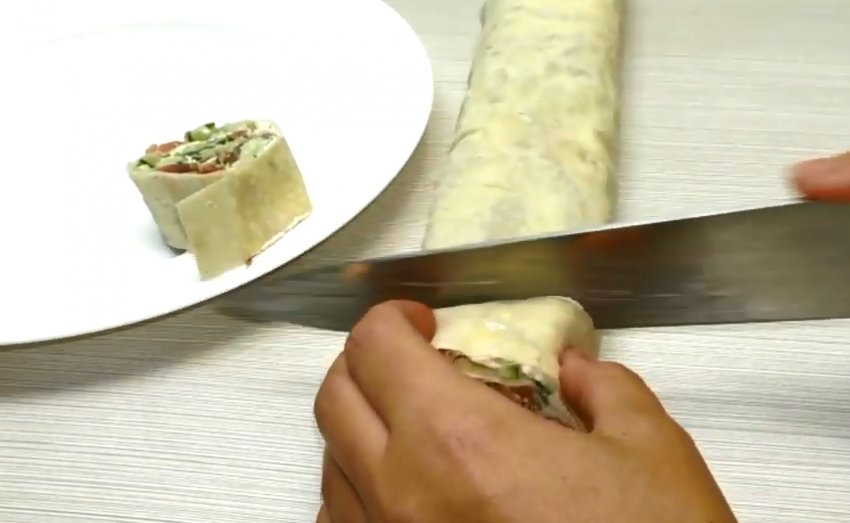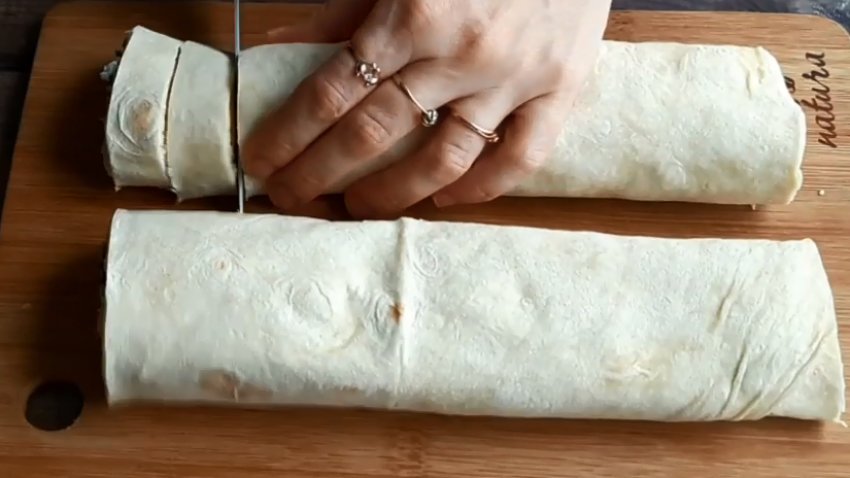 Згорніть у рулет і розділіть на невеликі шматки.![]()