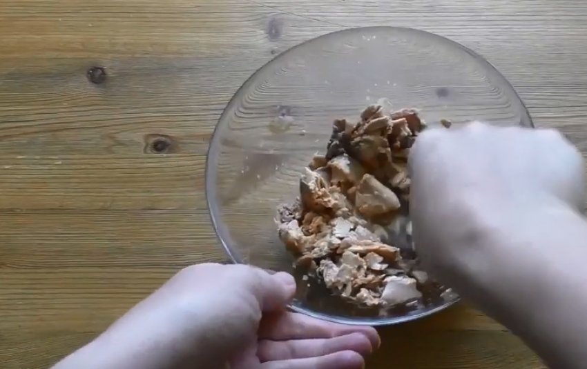 - Дістаньте з горбуші кісточки, якщо вони є, і подрібніть виделкою.