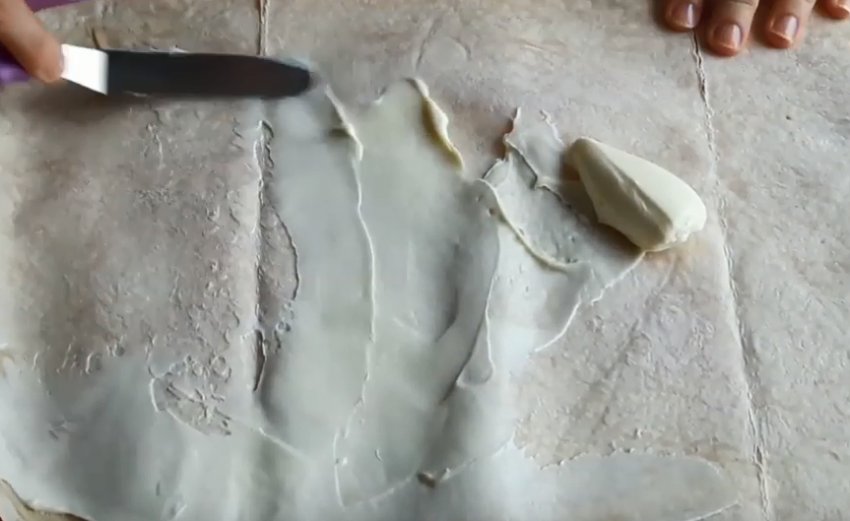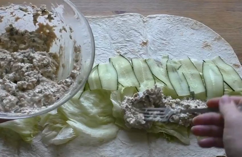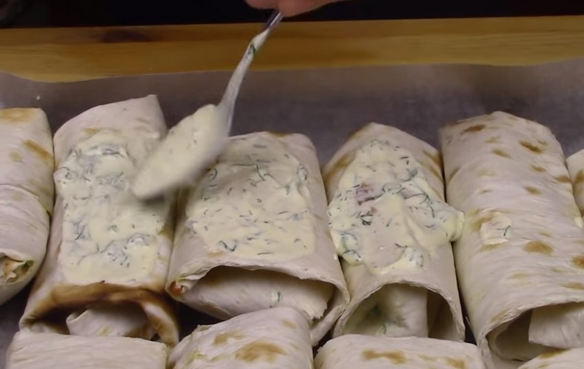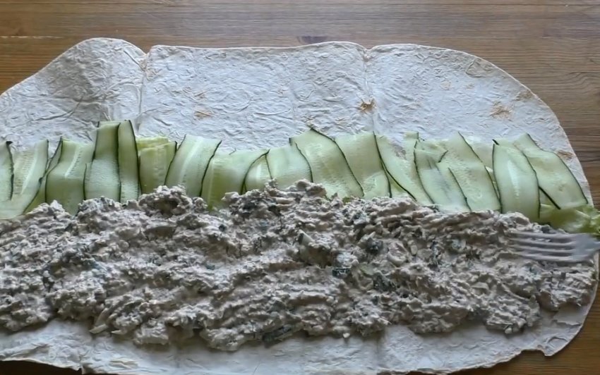 Ретельно розподіліть її по всій поверхні лаваша.![]()