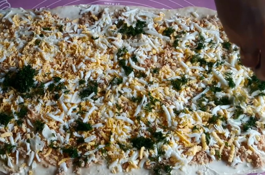 - Змастіть його майонезом і посипте нарізаними яйцями.