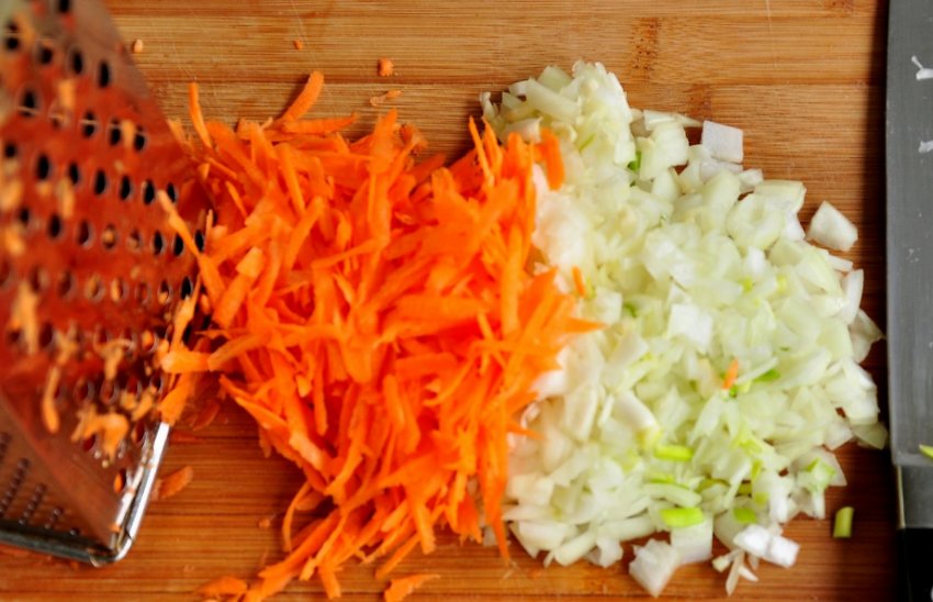 Наріжте цибулю невеликими кубиками, а моркву натріть на дрібній тертці.![]()