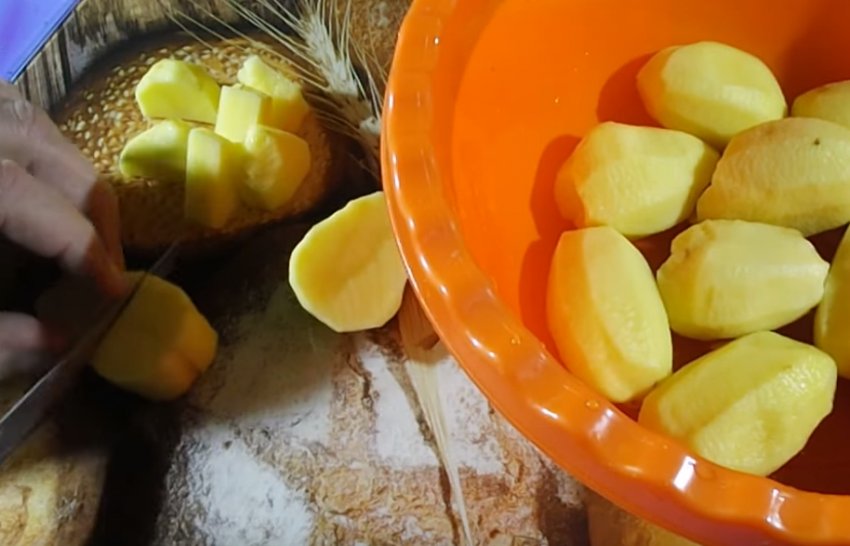 - Картоплю звільнити від шкірки, нарізати кільцями, завтовшки близько 0,8-1 см.