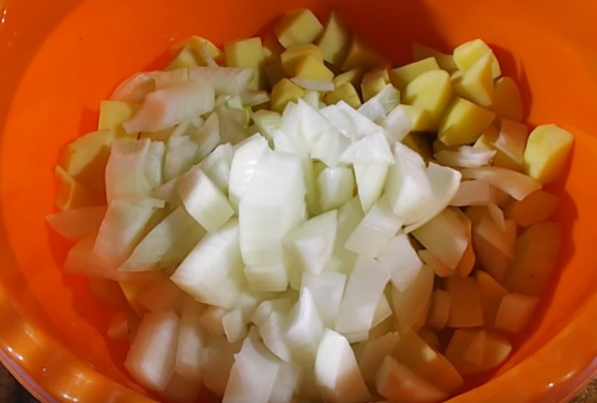 У тарілці змішати цибульну і картопляну сировину.![]()