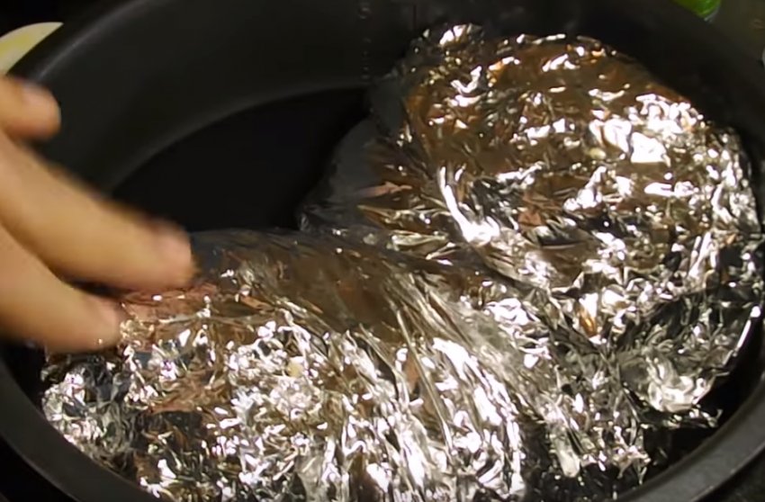 - Через 20 хвилин приготування відкрити мультиварку і перевернути інгредієнти.