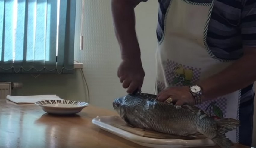 - Очистити рибу від лушпиння, зябер і нутрощів, розрізати на балик.