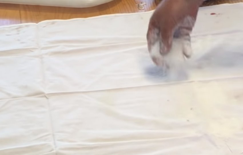 На відріз полотняної тканини, розмірами 100×100 см, викласти шар солі, змішаної з цукром.![]()
