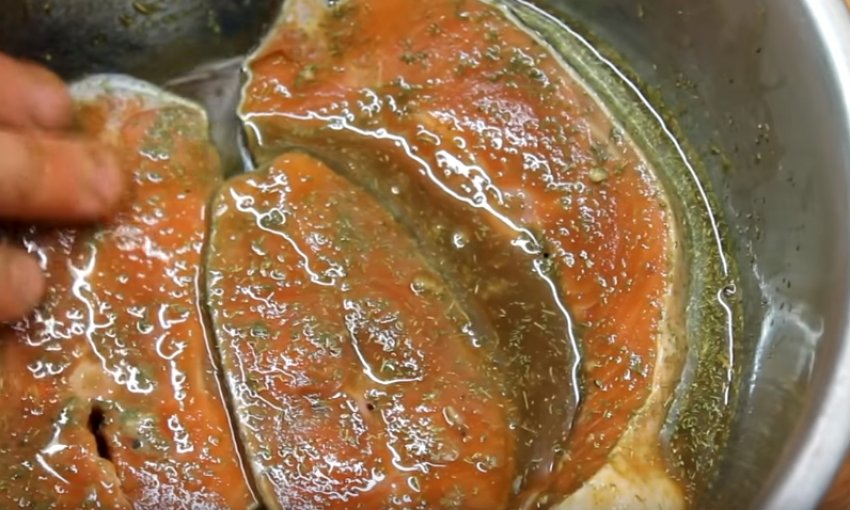 Замочити кету в отриманому маринаді на 30 хвилин.![]()