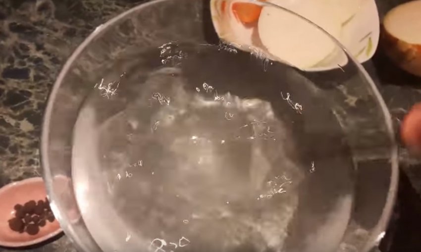 У глибоку миску додати по чайній ложці солі та цукру, залити суміш водою і розмішати.![]()