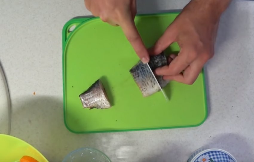 Почищену і помиту рибу порізати на порційні шматки.![]()