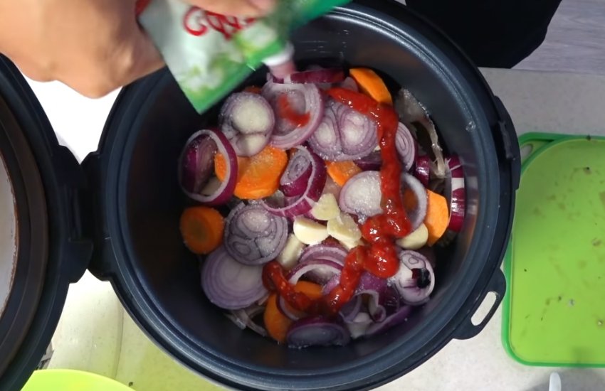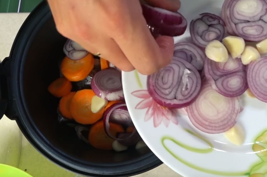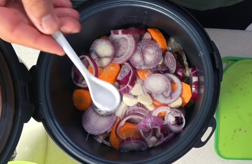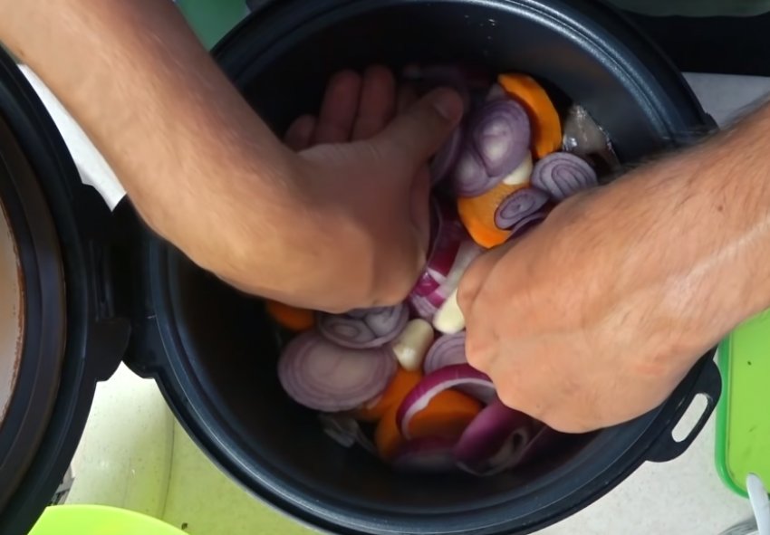 Активувати режим "Тушкування" на 4-6 годин, щоб розм'якшилися кістки.![]()