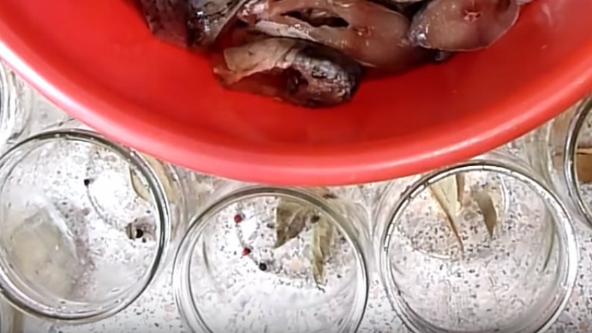 Розкласти в банки по одному лавровому листу, 3-5 шт. перцю.![]()