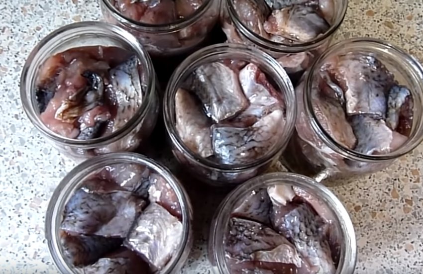 Щільно, добре трамбуючи, помістити в банки рибне філе.