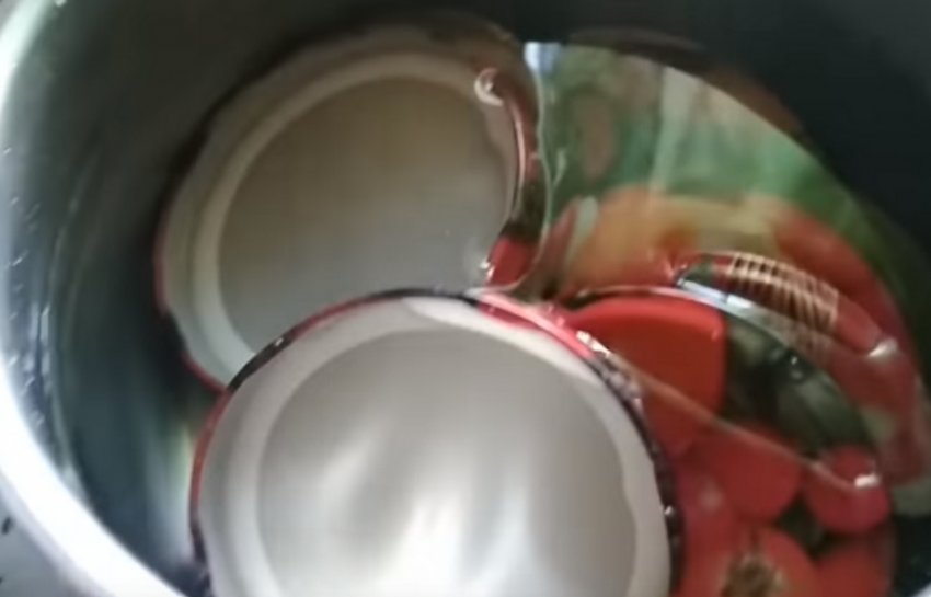 Прокип'ятити кришки протягом 5-7 хвилин, щоб вони розм'якшилися і краще прилягали до закаточних ємностей.
