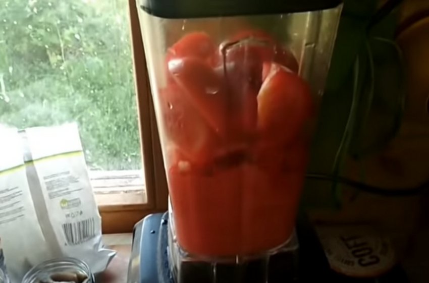 Влити по 4 ст. л. подрібнених томатів у кожну банку.![]()