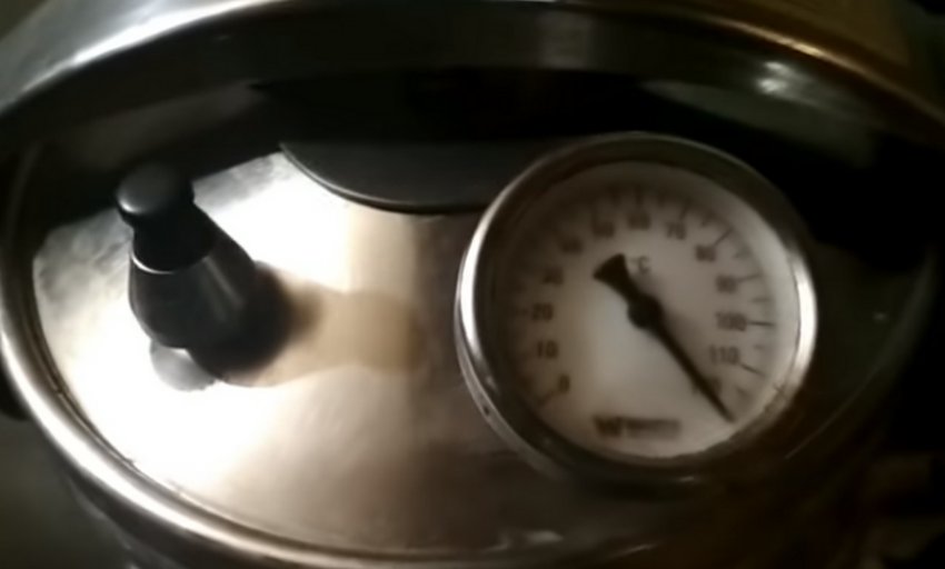Помістити банки в автоклав з водою і на вогонь. Витримати згідно з інструкцією до автоклава.![]()