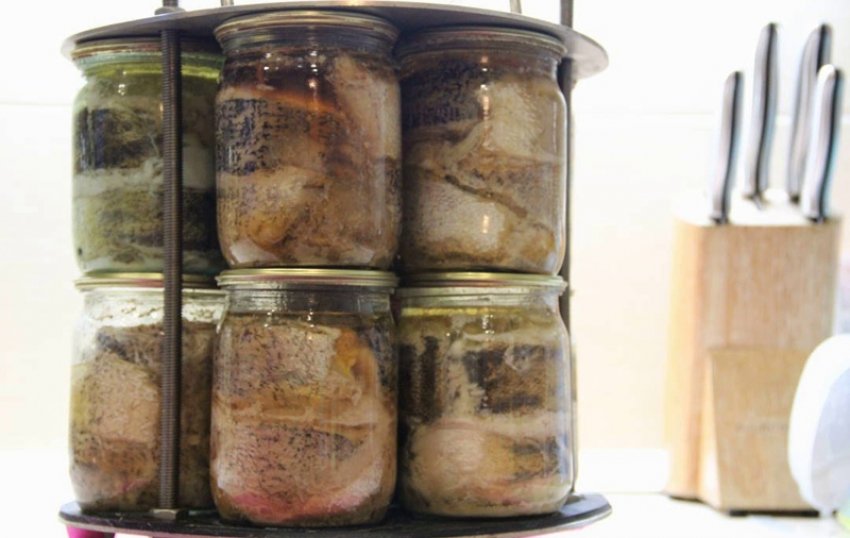 Час зберігання домашньої рибної консервації становить 12 місяців. При цьому важливо, щоб температурний режим був у межах 0...+5°С, а вологість повітря - не вище 75%.