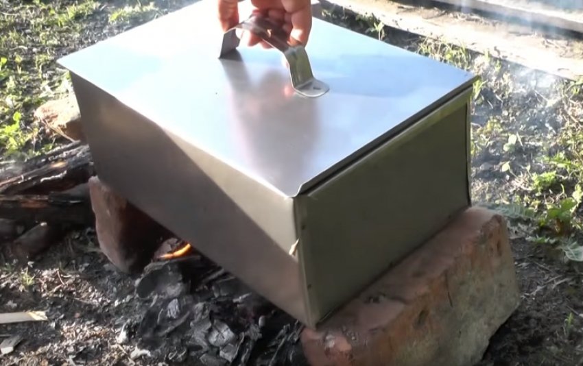 - Накрийте кришкою коптильню і встановіть на вогонь.