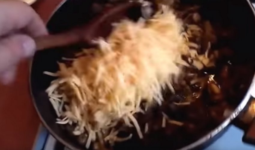 обсмаженої маси додати сир, лимон, мускатний горіх і тушкувати до розм'якшення сиру.![]()
