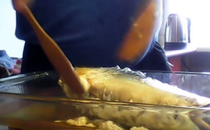 рибу, обережно перевернути її на інший бік, змастити соусом, що залишився, і запікати знову протягом 15 хв.![]()