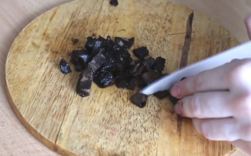 часом гриби та цибулю дрібно порізати, обсмажувати на вершковому маслі до набуття цибулею золотистого кольору.![]()