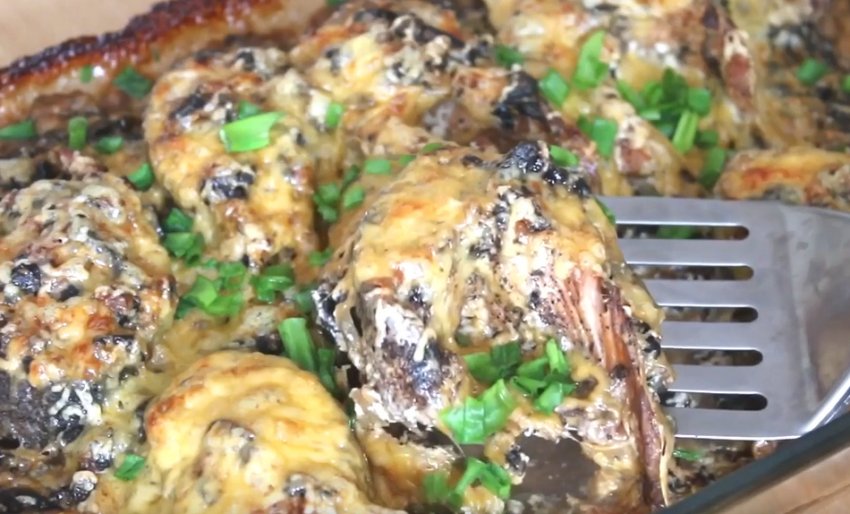 Запечена в сметанно-грибному соусіВидео-рецепт: Запечена в сметанно-грибному соусі