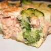 - Укласти на тісто шарами сир, дрібно порізану рибу, варену броколі.
